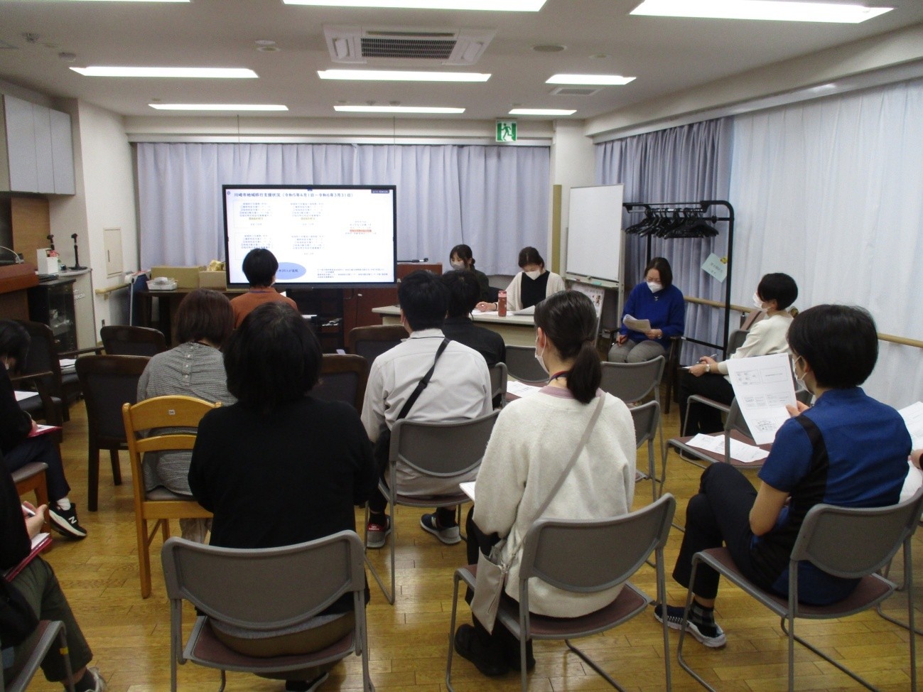 入院患者様の地域移行・地域定着支援の流れや、地域での実際の暮らし方、グループホームの生活実際について説明がありました。当院からは多職種22名が参加しました。