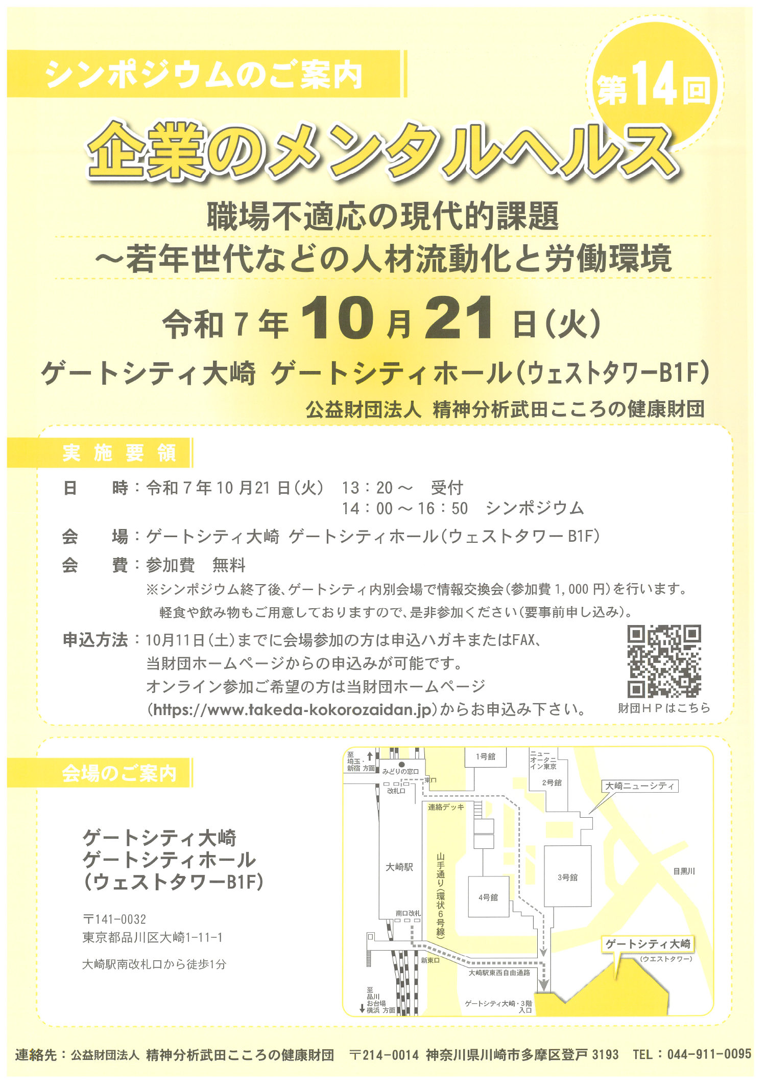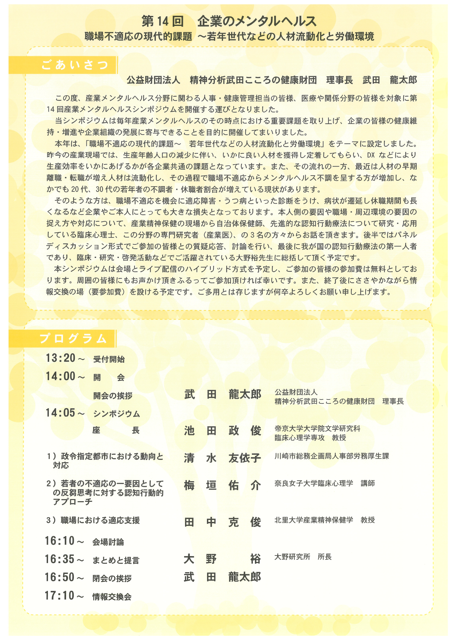 第14回シンポジウム「企業のメンタルヘルス」のお知らせ
